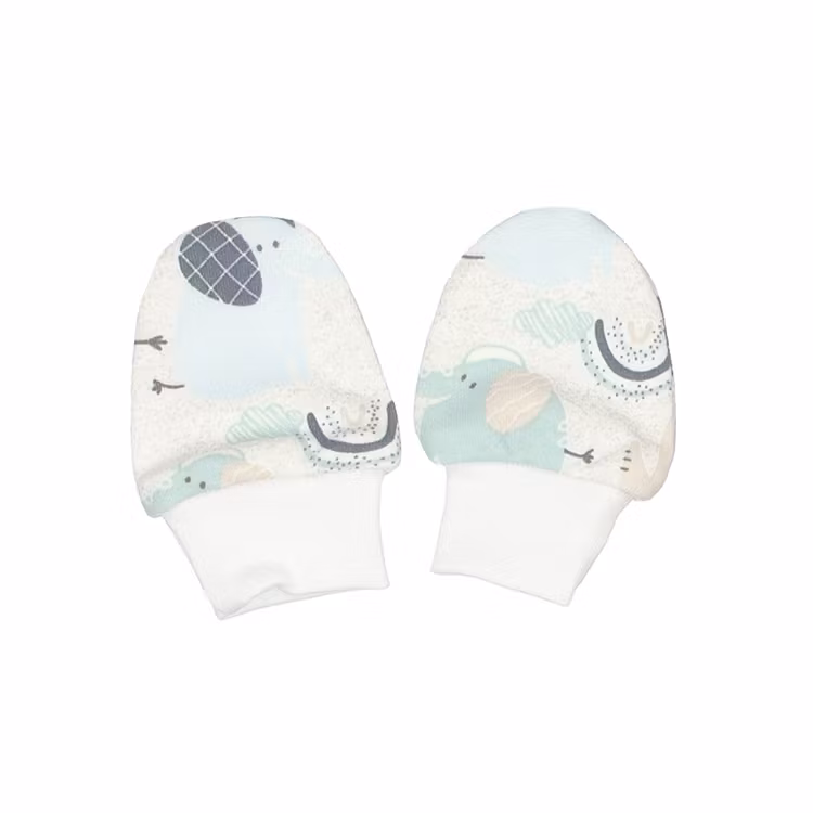 Mintgröna vantar med elefantmönster från kollektionen Happy Elephants. Vantarna har mudd vid handleden. One-size: 0-3 månader.