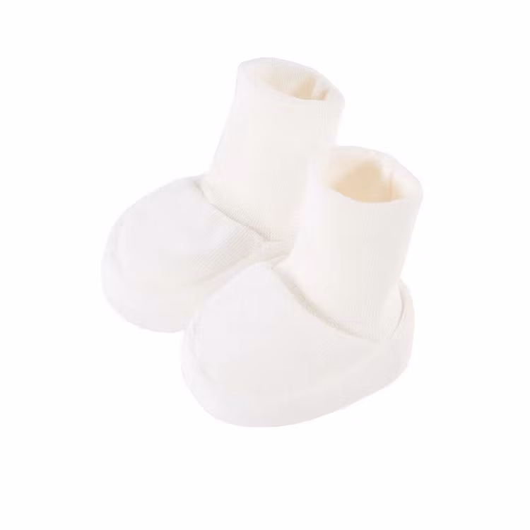 Mjuka och varma cremevita velour babytossor från kollektionen Ceremony. Tossorna har mudd vid fotleden. One-size: 0-3 månader.