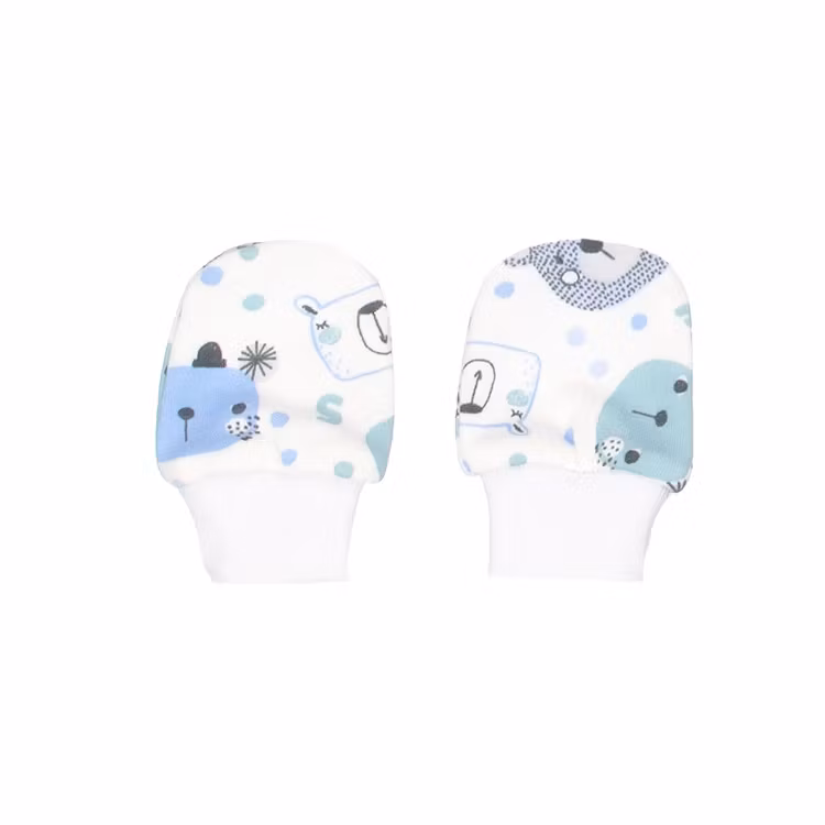 Söta vantar med björnar från kollektionen Baby Bear. Vantarna har mudd vid handleden. One-size: 0-3 månader.