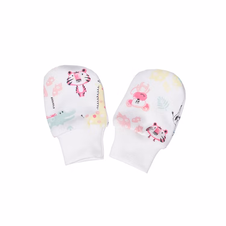 Vantar med söta djur från kollektionen Safari. Vantarna har mudd vid handleden. One-size: 0-3 månader.