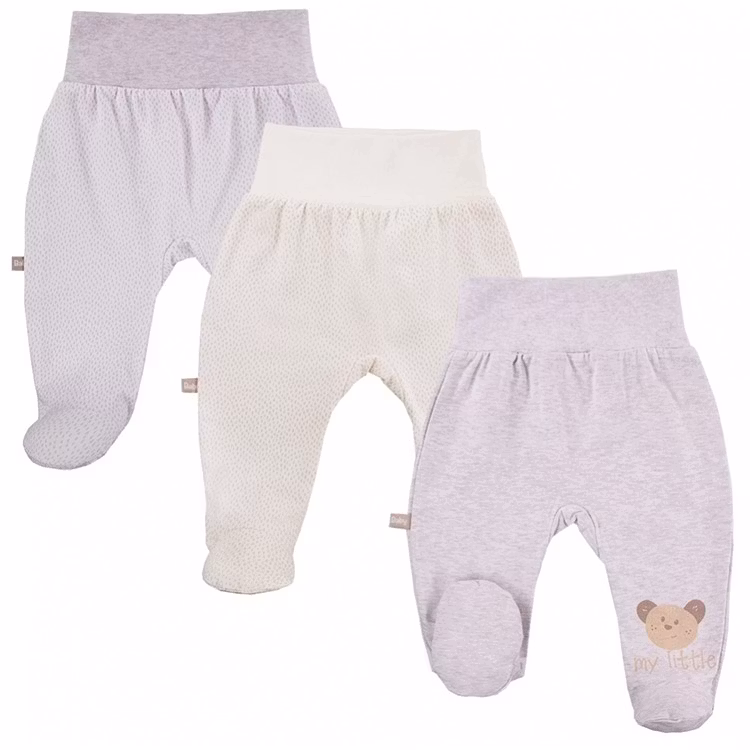 3-pack beige byxor med och hela fötter - Tiny Teddy