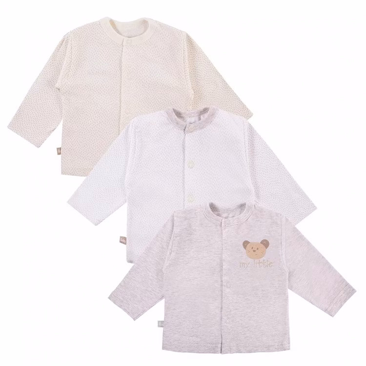 Långärmade tröjor i 3-pack med nallemotiv och mönster från kollektionen Tiny Teddy. Tröjorna har tryckknappar från krage till midjan.