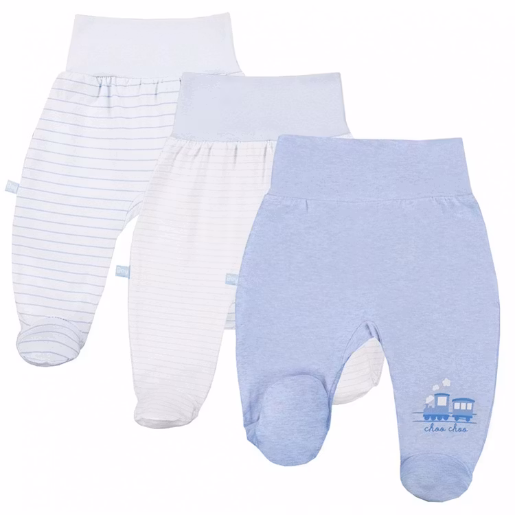 3-pack byxor med tågmotiv och mönster från kollektionen Tiny Train. Byxorna har mjuk mudd i midjan samt hela fötter.