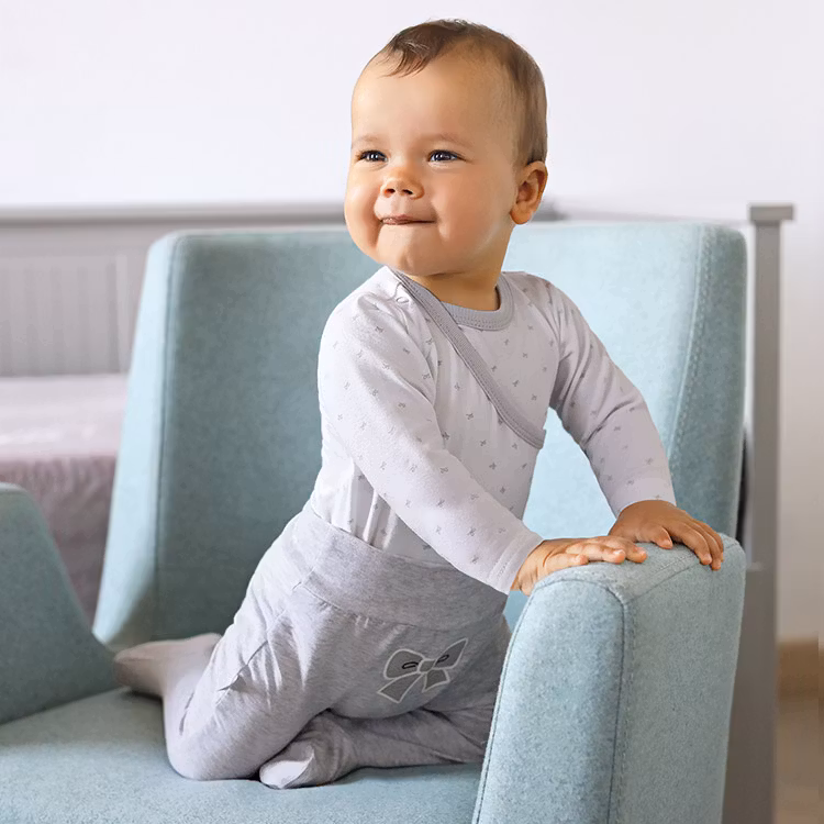 3-pack grå byxor med och hela fötter - Tiny Bow