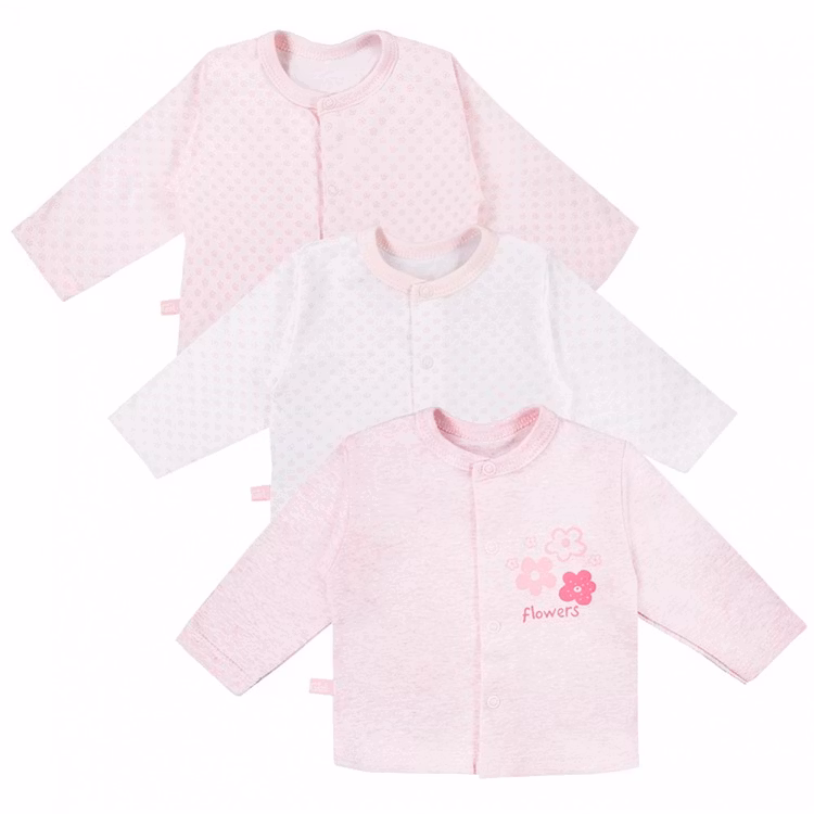 Långärmade tröjor i 3-pack med blommor och blommigt mönster från kollektionen Tiny Flower. Tröjorna har tryckknappar från krage till midjan.