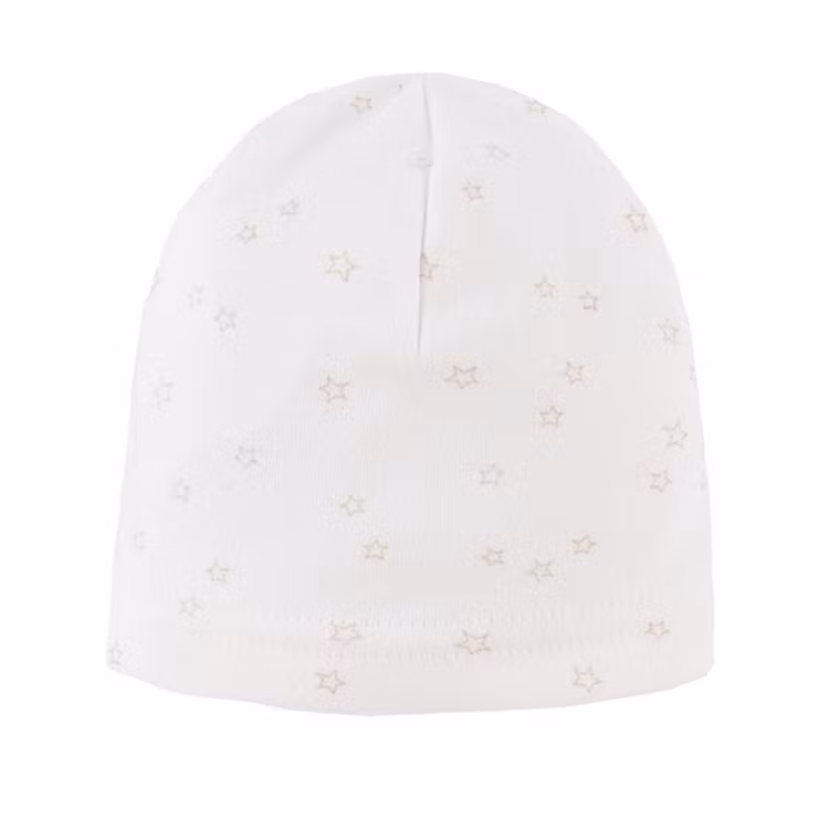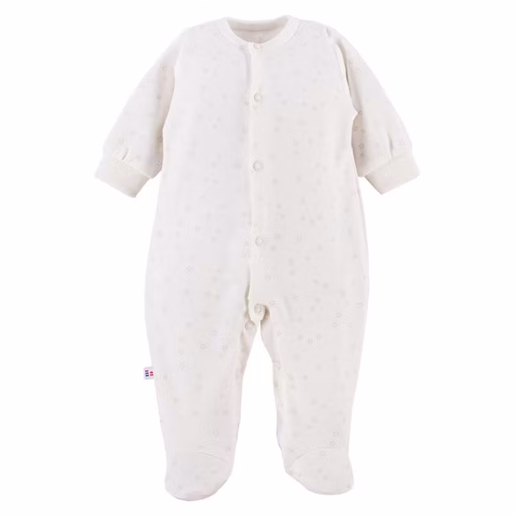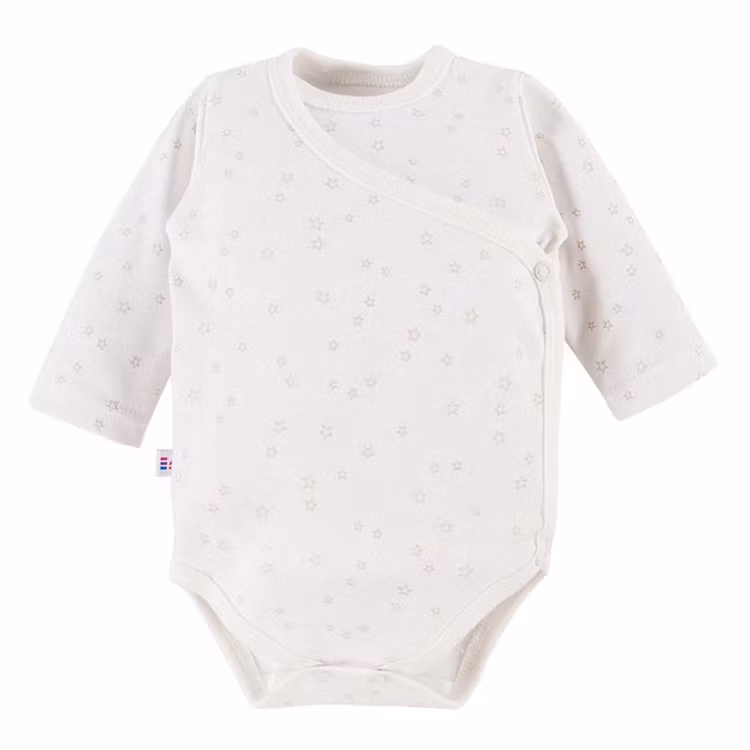 Cremevitt startpaket för nyfödda från kollektionen Sweet Stars. Långärmad sparkdräkt, body, byxor och mössa. Vackert stjärnmönster.