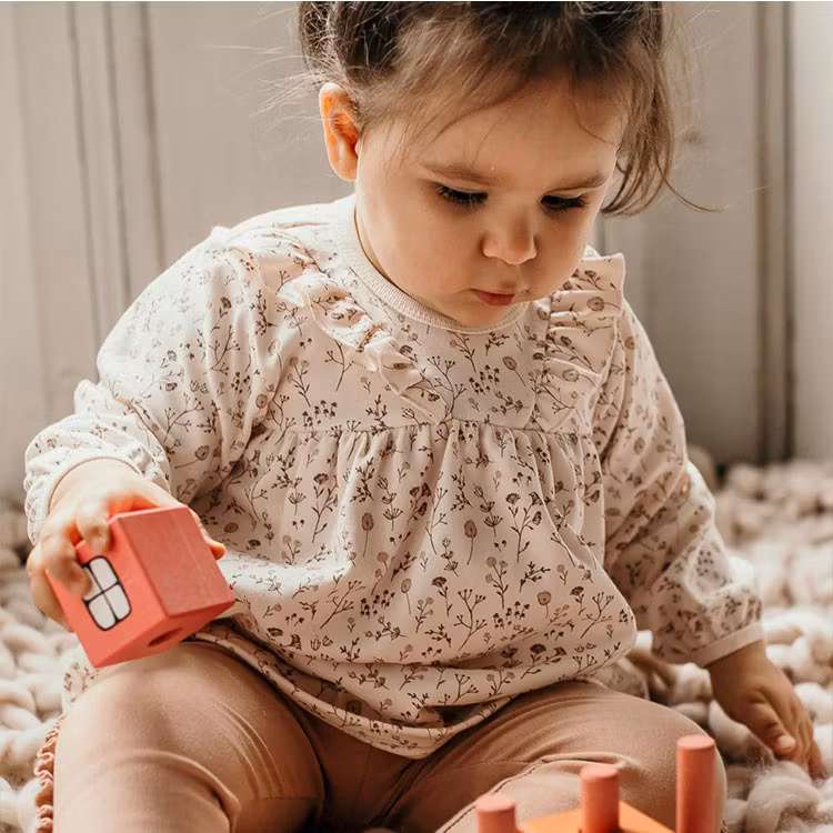 Beige tunika i bomull från kollektionen Bloom. Tunikan har ett vackert blommigt mönster och tryckknappar vid axeln.
