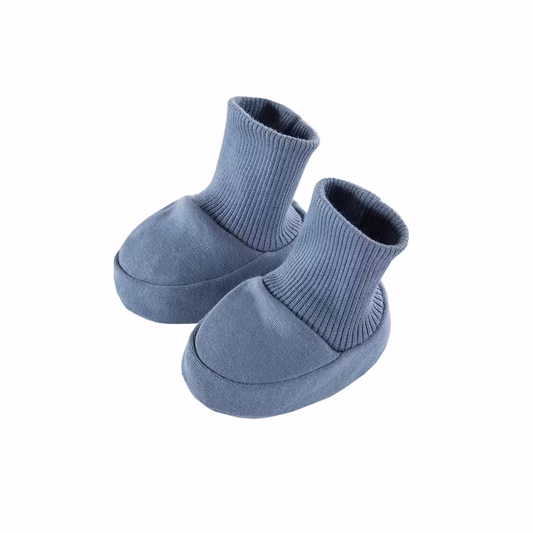 Mjuka och sköna blå babytossor från kollektionen Jump. Tossorna har mudd vid fotleden. One-size: 0-3 månader.