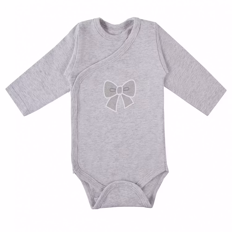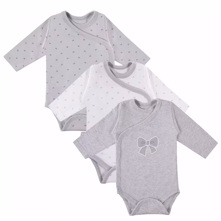 Långärmade omlottbodies i 3-pack från kollektionen Tiny Bow. Med rosettmönster samt rosettmotiv. Bodys med tryckknappar vid sidan och grenen.