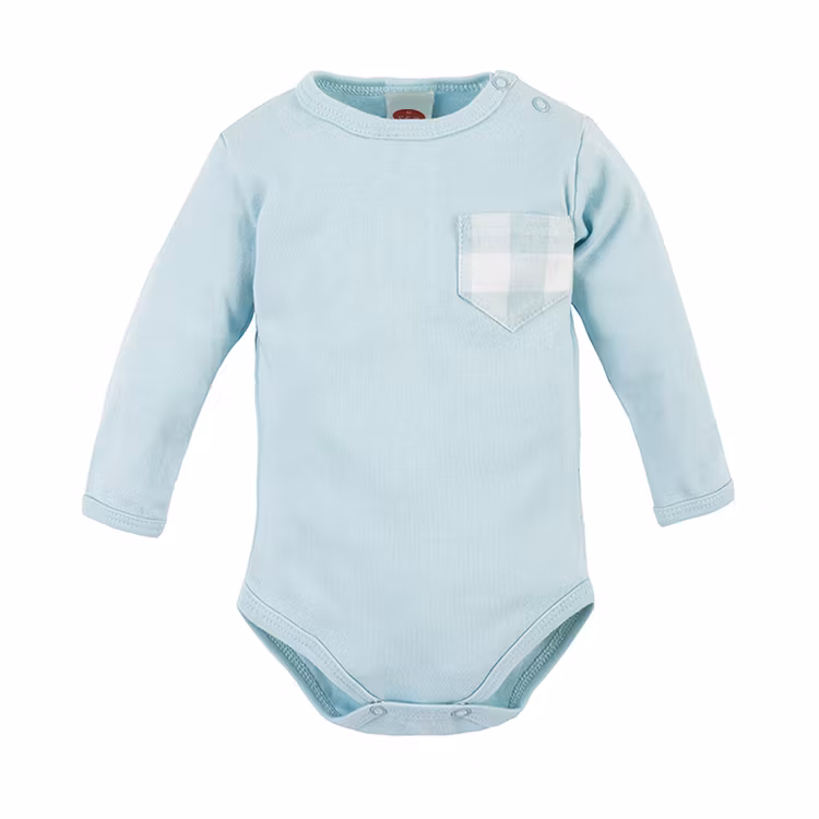 Mintgrön body från kollektionen Mohito. Randig ficka på bröstet och tryckknappar vid axel och gren.