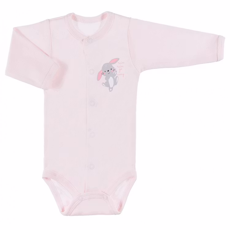 Rosa långärmad body med sött kaninmotiv från kollektionen Family. Bodyn har tryckknappar från kragen till grenen.