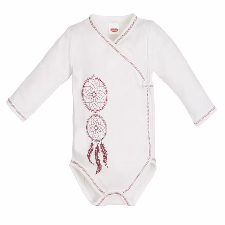 Vit långärmad body med motiv av drömfångare från kollektionen Dream. Bodyn har tryckknappar vid sidan och grenen.