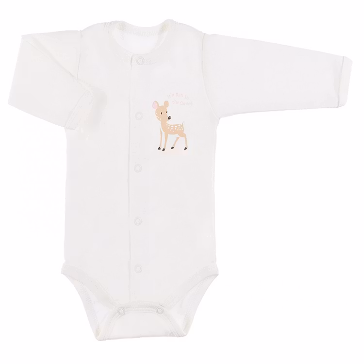 Vit långärmad body med sött rådjursmotiv från kollektionen Deer. Bodyn har tryckknappar från kragen till grenen.