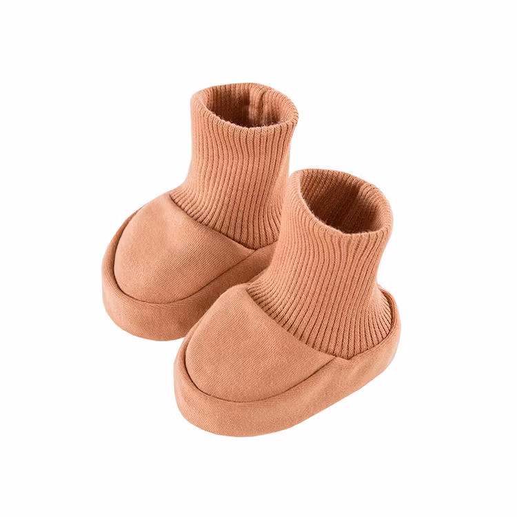 Mjuka och sköna bruna babytossor från kollektionen Jump. Tossorna har mudd vid fotleden. One-size: 0-3 månader.