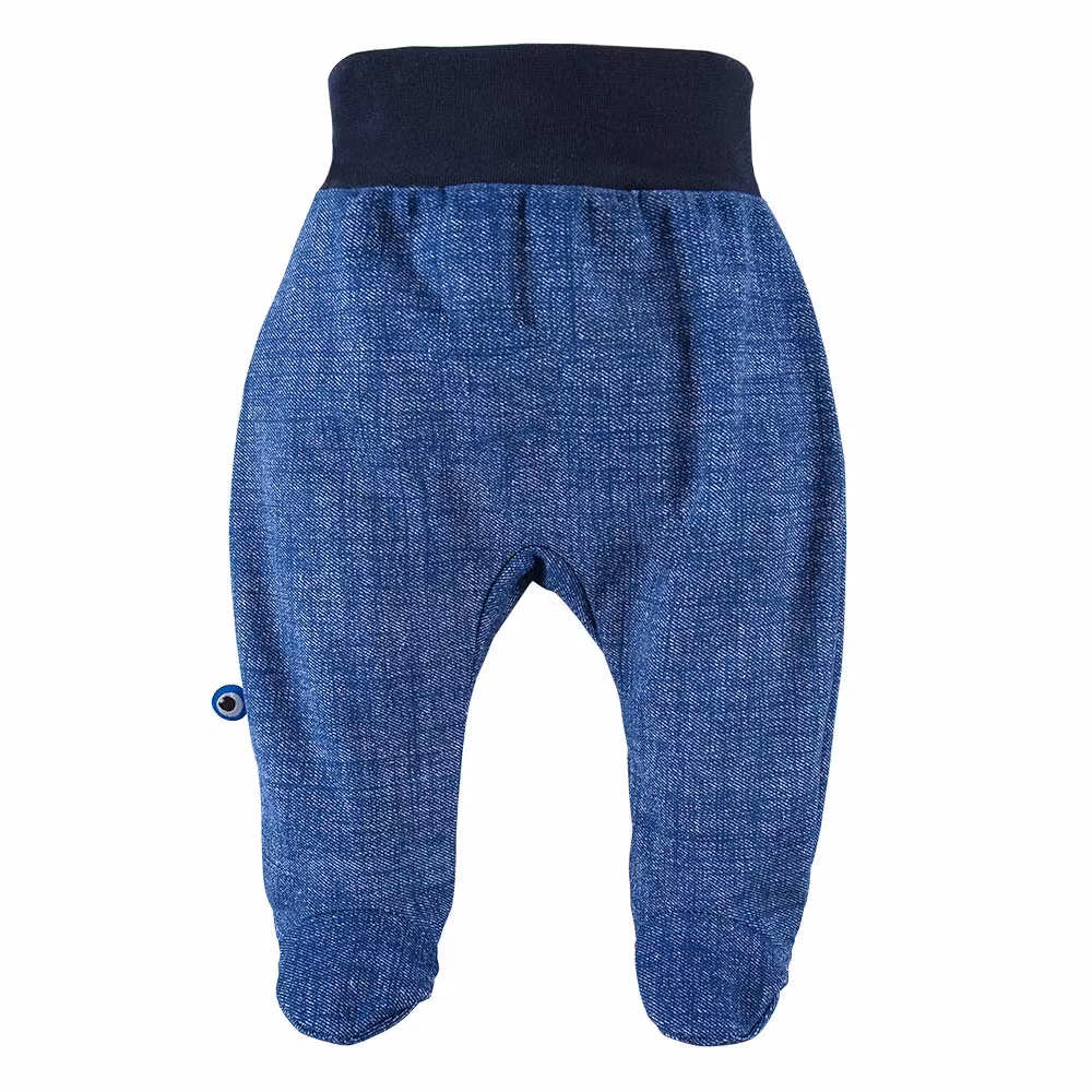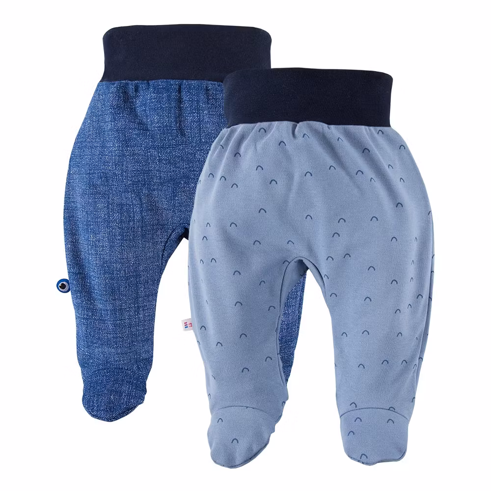 Mjuka byxor i 2 pack med hela fötter - Jeanslook och blå. Byxorna har mudd vid midjan och hela fötter.