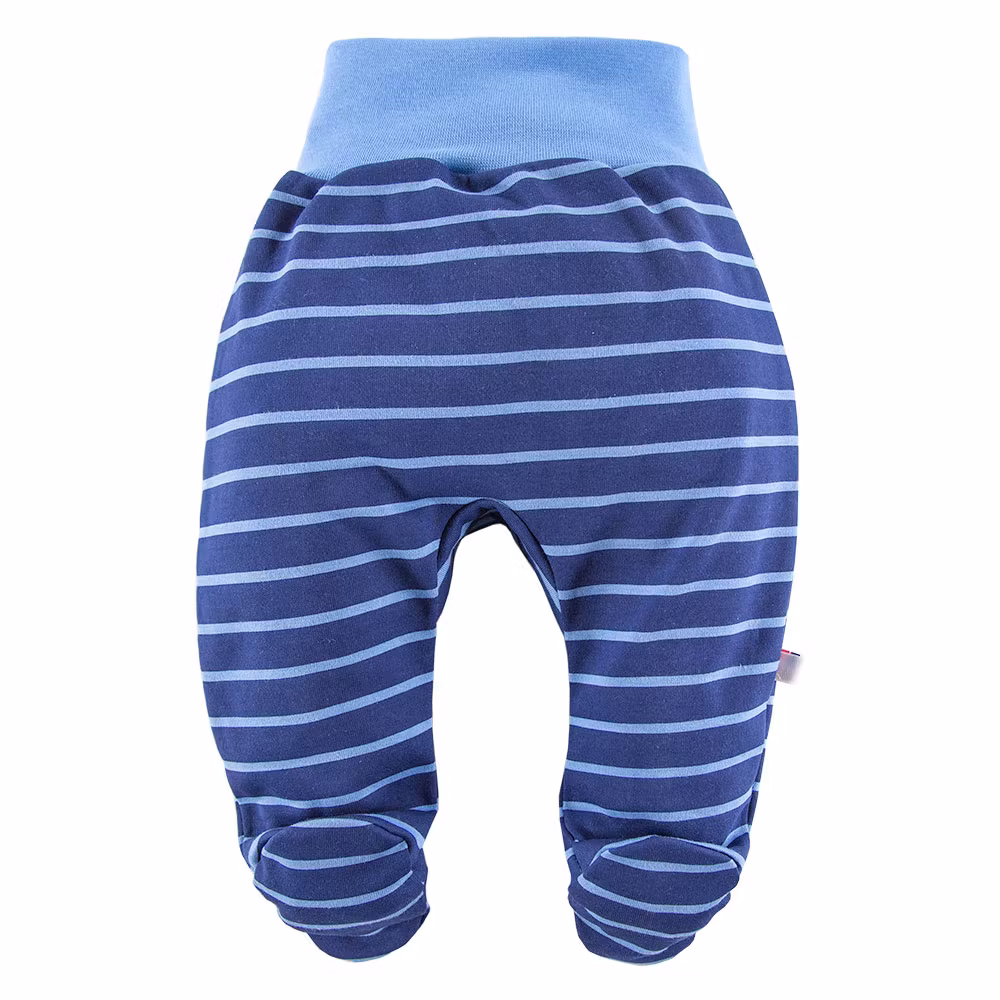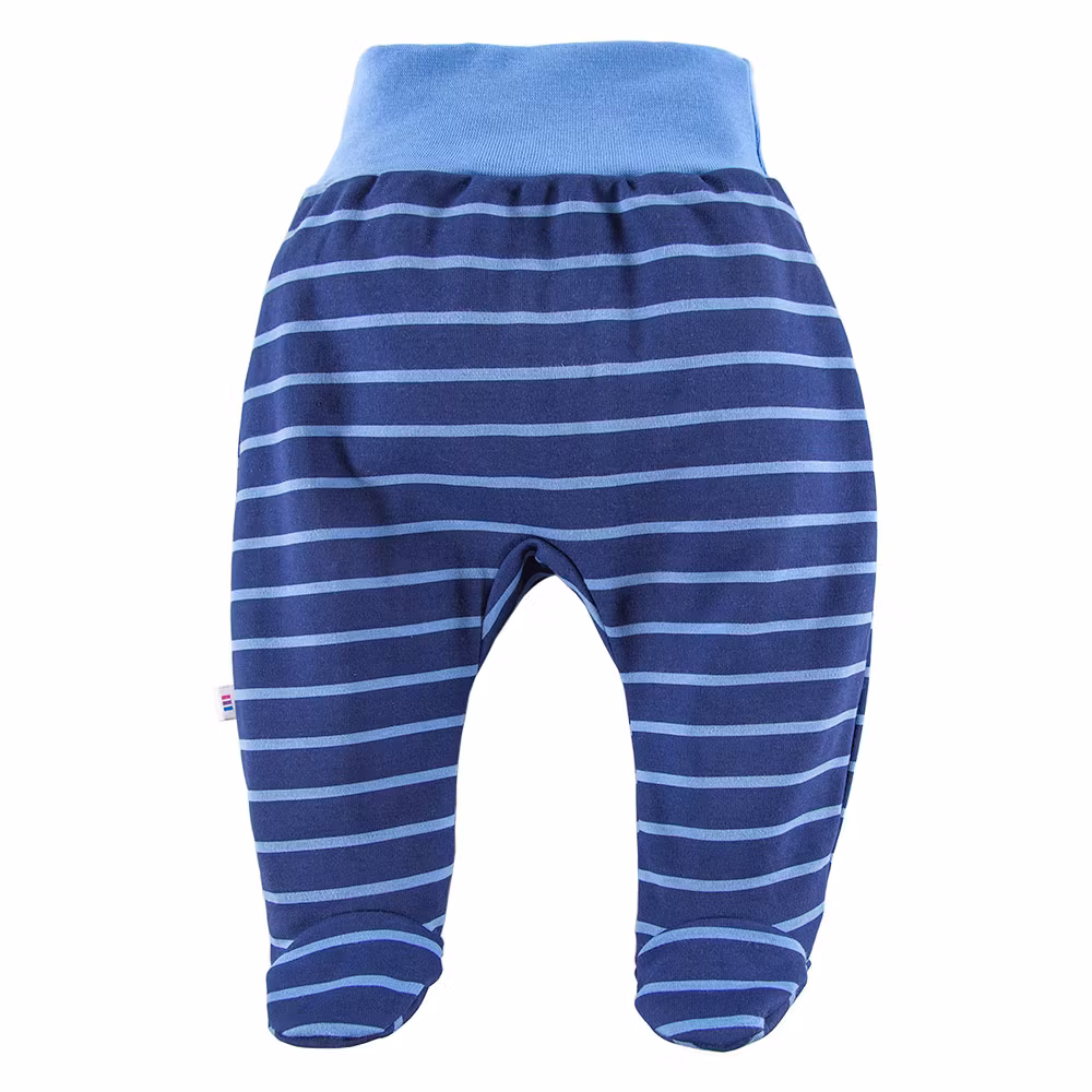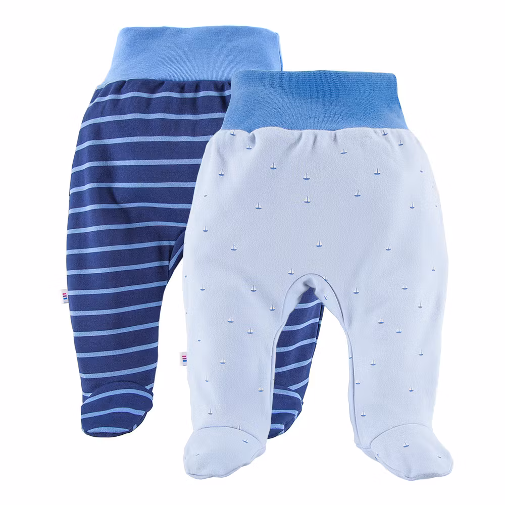 2-pack byxor med hela fötter - Ljusblå och mörkblå. Byxorna har mudd vid midjan och hela fötter.