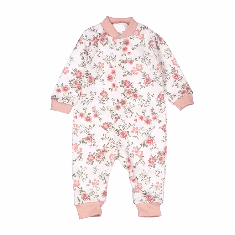Vit långärmad jumpsuit med blommigt mönster från kollektionen Garden. Jumpsuiten har knappar från krage till ben samt mudd vid benslut.
