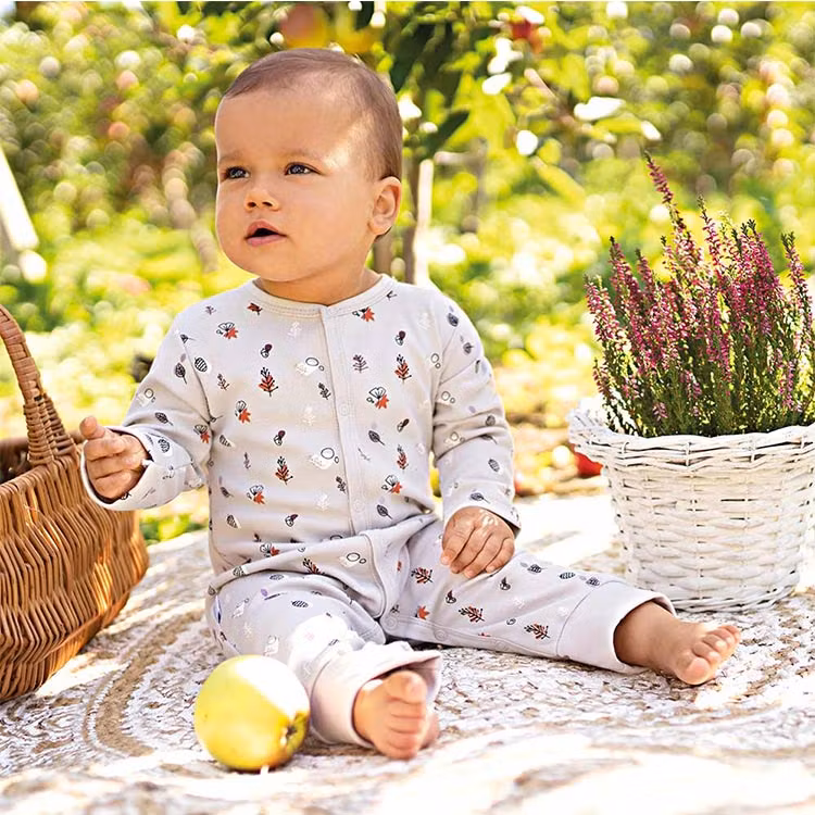 Långärmad jumpsuit från kollektionen adventure. Lövmönstret ger en charmig touch och gör den till en utmärkt present för nyblivna föräldrar.