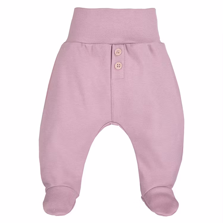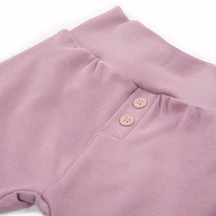 Lila byxa med hel fot och knappar från kollektionen Simply. Byxan har mjuk mudd i midjan samt hela fötter.