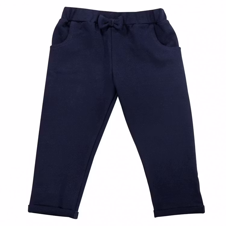 Byxa i marinblå färg med rosett från kollektionen Happy. Byxan har mjuk resår i midja och mudd i benslut.