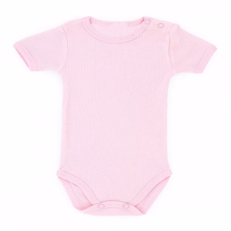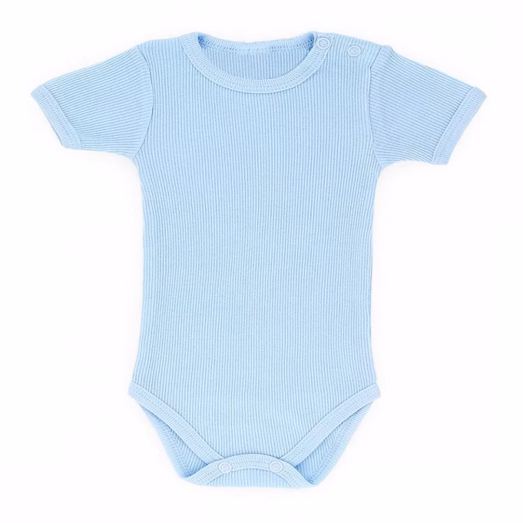 Ribbad kortärmad body från kollektionen Classic Baby. Finns i flera färger: blå, rosa, grön och gul. Bodyn har tryckknappar vid axeln och grenen.