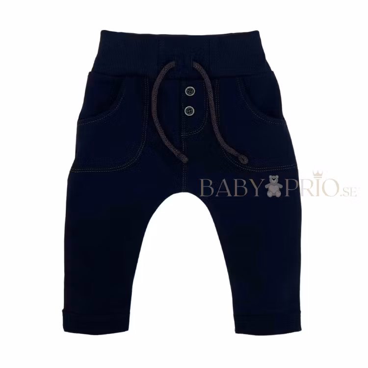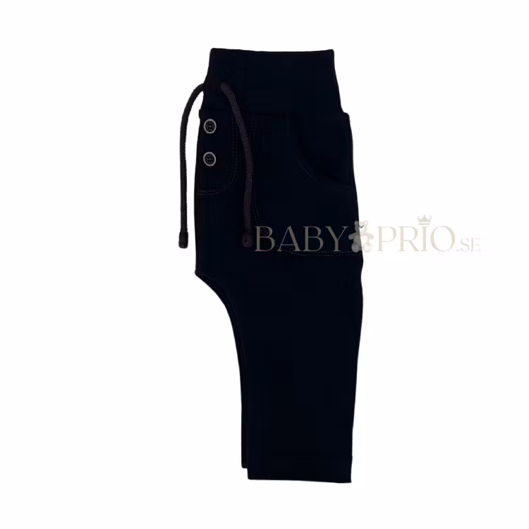 Svarta sweatpants med fickor från kollektionen Casual. Byxan har mjuk mudd i midja och uppvikt kant vid benslut. Imitation av dragsko och knappar.