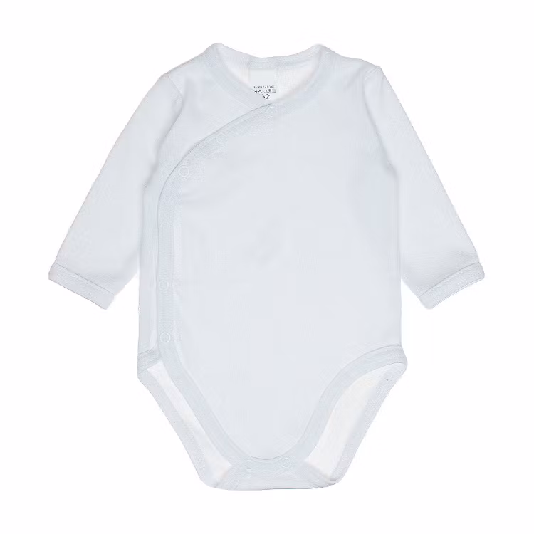 3-pack bodies från kollektionen Nova. Grå, vit & rosa body med smart knäppning, tryckknappar från krage till gren (ej omlott).