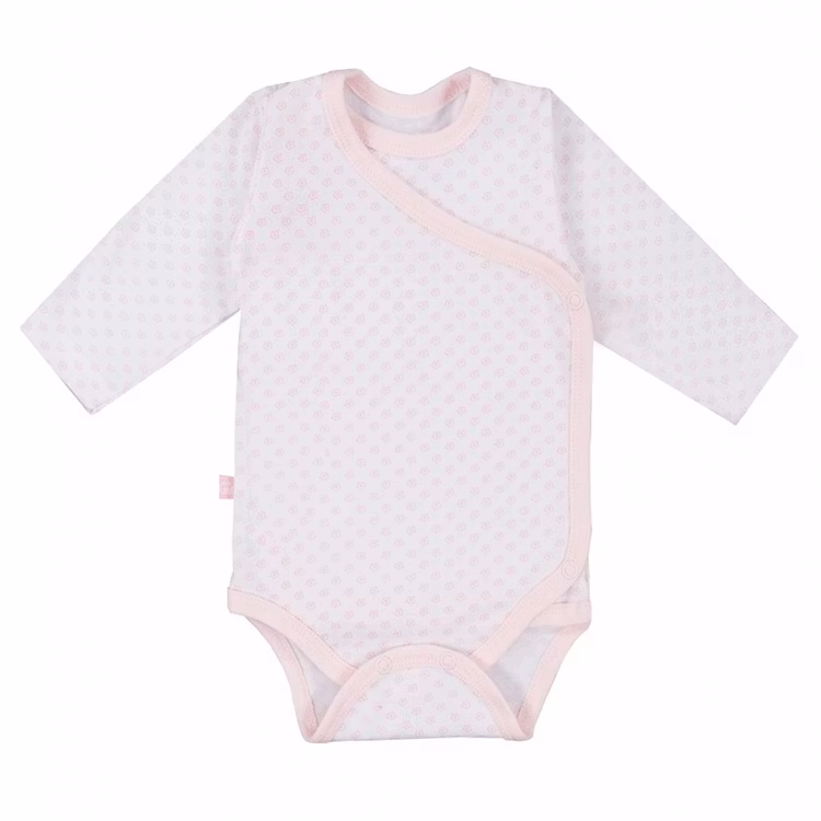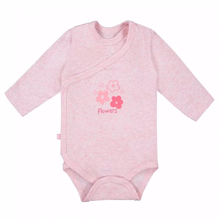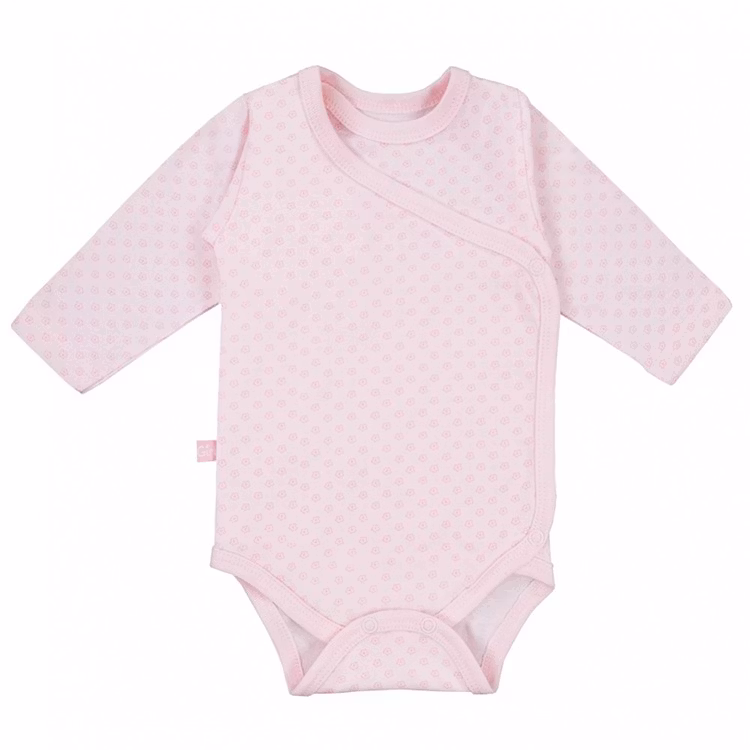 Långärmade omlottbodies i 3-pack från kollektionen Tiny Flower. Med motiv av blommor och mönster. Bodys med tryckknappar vid sidan och grenen.