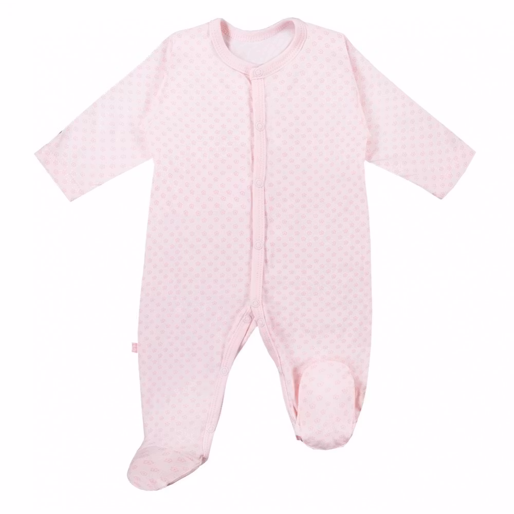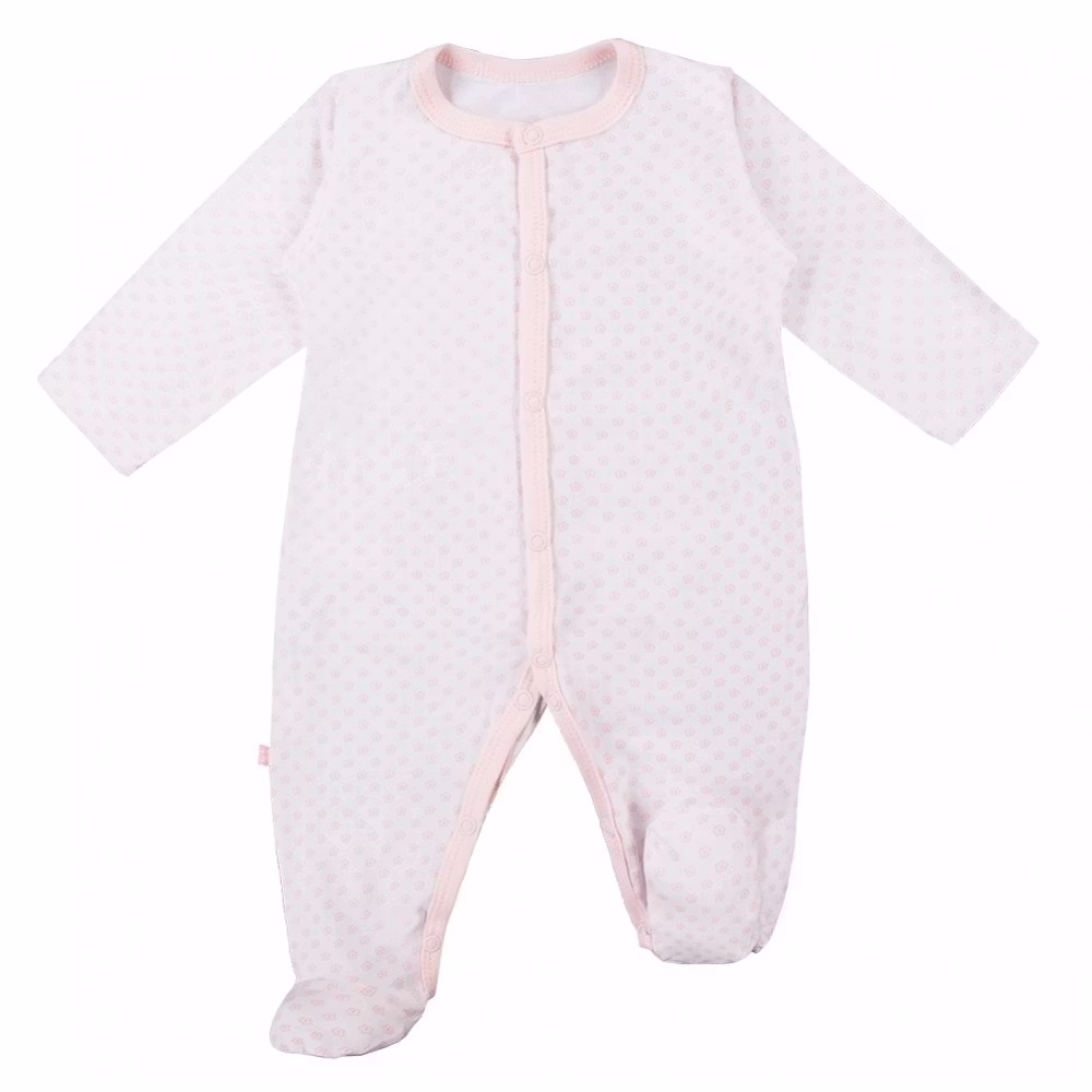 Långärmade sparkdräkter med blommotiv och blommönster från kollektionen Tiny Flower. Sparkdräkterna har hela fötter och tryckknappar från kragen till benen.