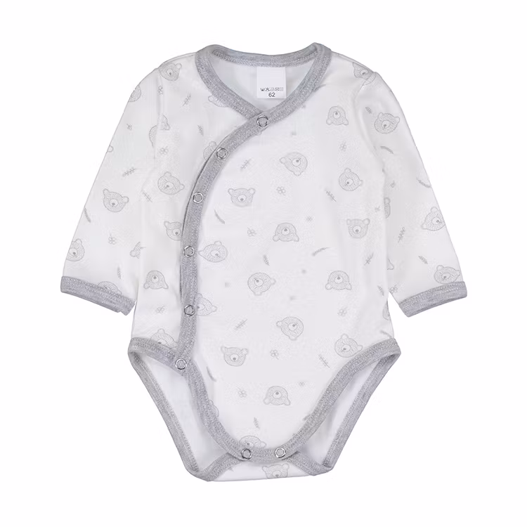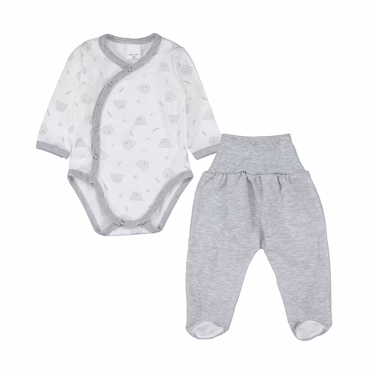 Söt body med nallemotiv och matchande grå byxa med hela fötter.