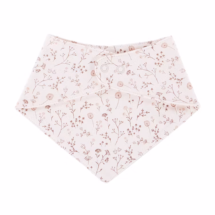 Beige dregglis med vackert blommönster från kollektionen Bloom. Dregglisen är justerbar och har tryckknappar i kragen. One-size: 0-24 månader.
