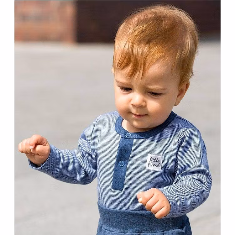 Blå långärmad body från kollektionen Snow. Bodyn har tryckknappar vid kragen och grenen.