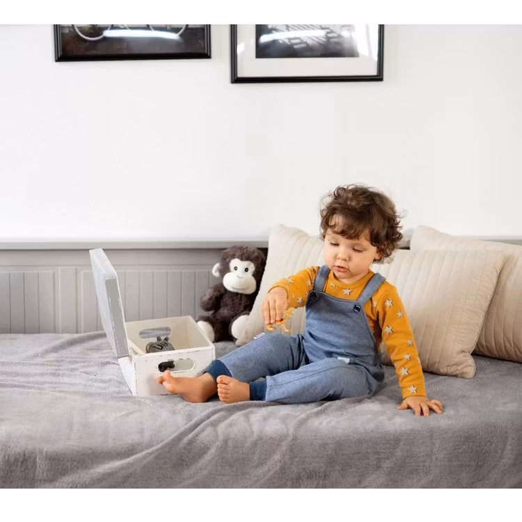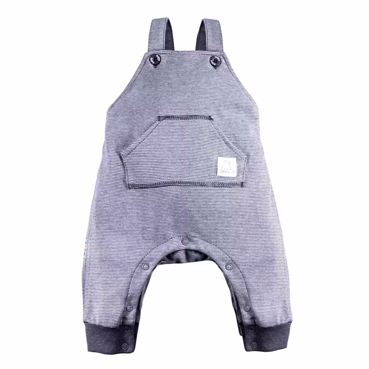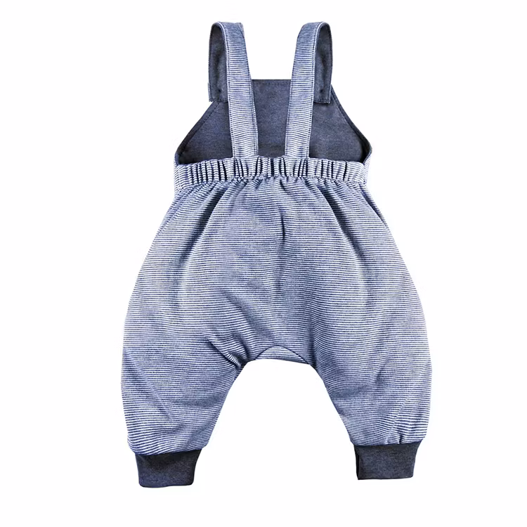 Blå hängselbyxor från kollektionen Unique. Byxan har mjuk mudd i ryggen och mudd vid benslut. Tryckknappar sitter vid gren och ben.