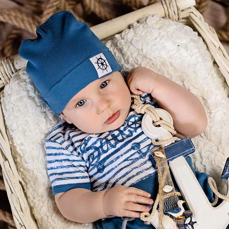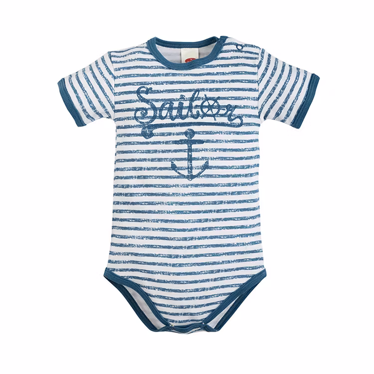 Kortärmad blå body från kollektionen Blue Sea. Tryckknappar vid axel och gren.