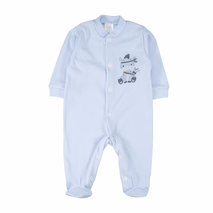 Sparkdräkt från kollektionen Baby Safari. Sparkdräkten har knappar från krage till ben samt hela fötter.