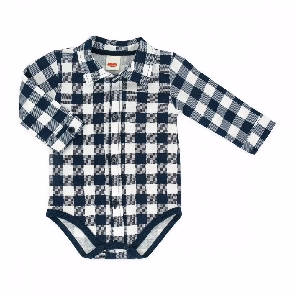 Mjuk vit-blå långärmad bodyskjorta med rutigt mönster från kollektionen Classic Shirt. Bodyn är har tryckknappar vid grenen och knappar från krage till gren.