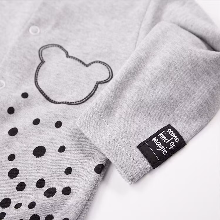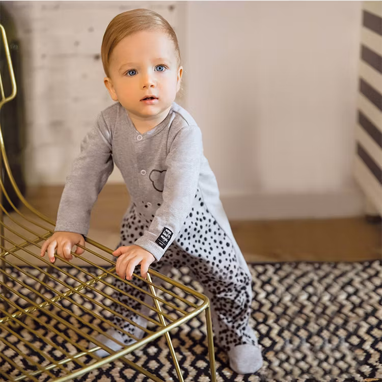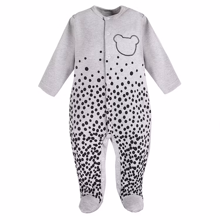Grå sparkdräkt i bomull från kollektionen Magic. Sparkdräkten har knappar från krage till ben samt hela fötter.