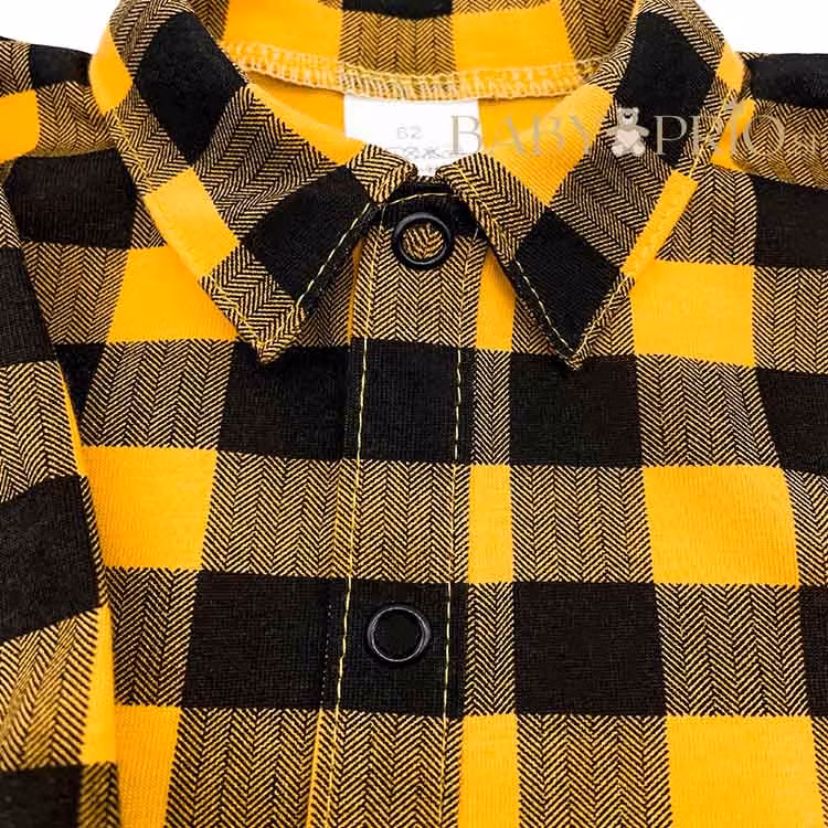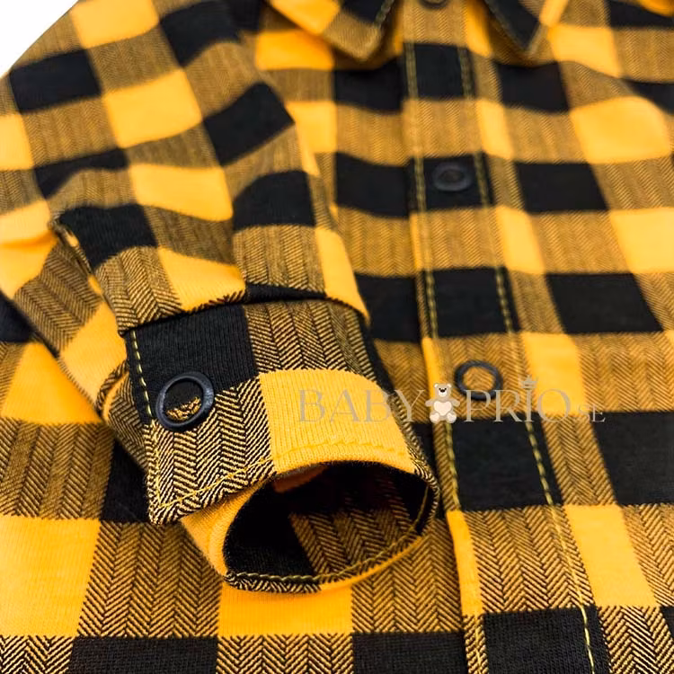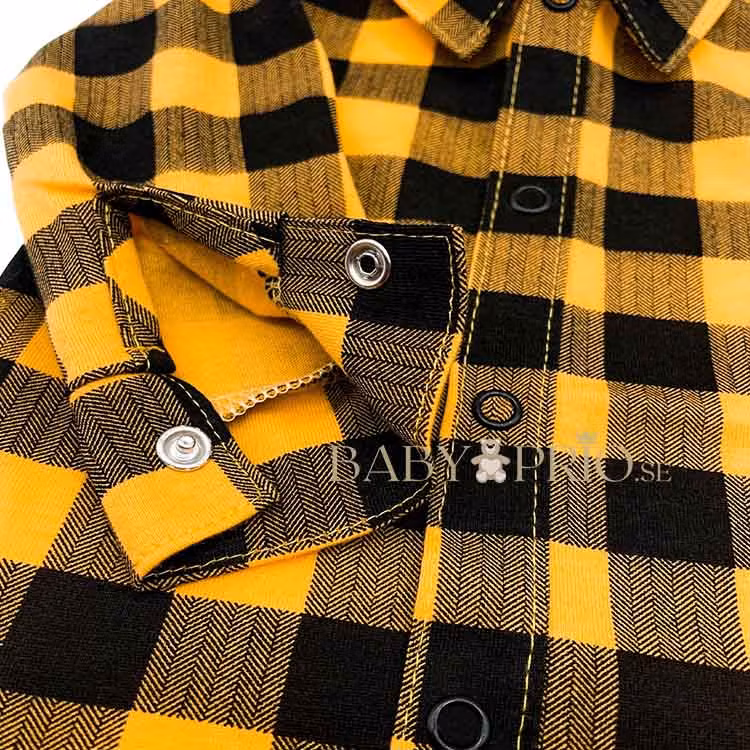 Mjuk gul rutig bodyskjorta från kollektionen Casual. Bodyn har tryckknappar vid ärmslut samt från krage till gren.