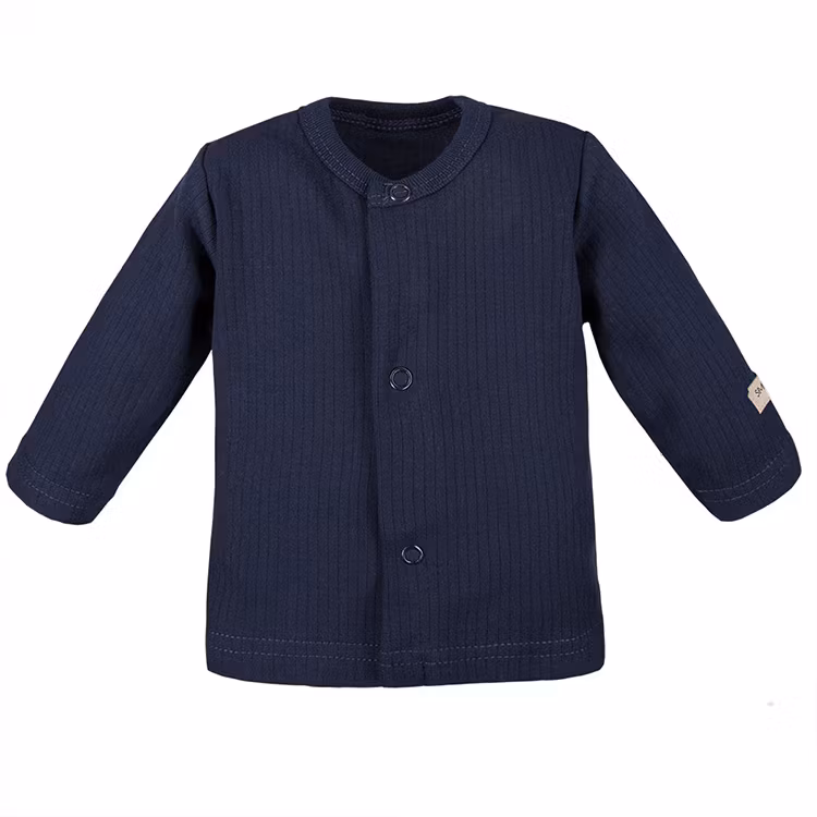 Marinblå kofta från kollektionen Simply. Koftan har knappar från krage till midja.