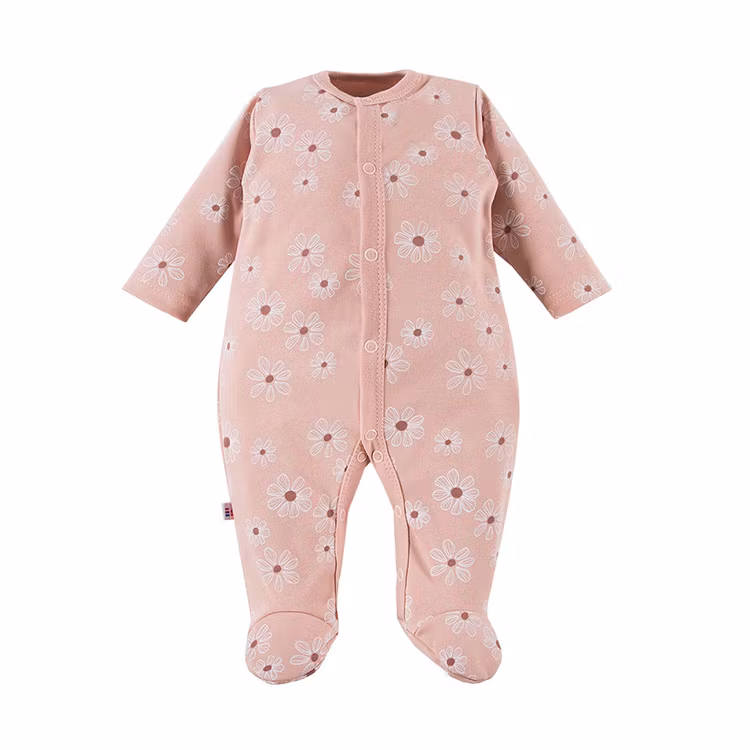 Rosa sparkdräkt i bomull från kollektionen Daisy. Sparkdräkten har knappar från krage till ben.