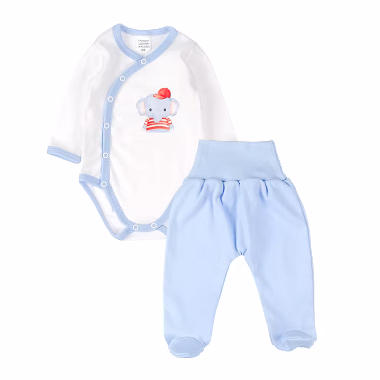 Set med söt elefant i keps från kollektionen Sweet Elephant. Bodyn har tryckknappar från krage till gren. Byxorna har mudd.