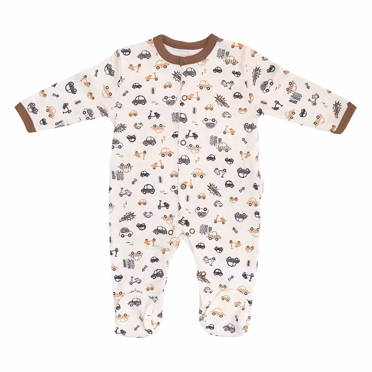 Sparkdräkt med bilar och mopeder från kollektionen Artur. Sparkdräkten har knappar från krage till ben samt hela fötter.