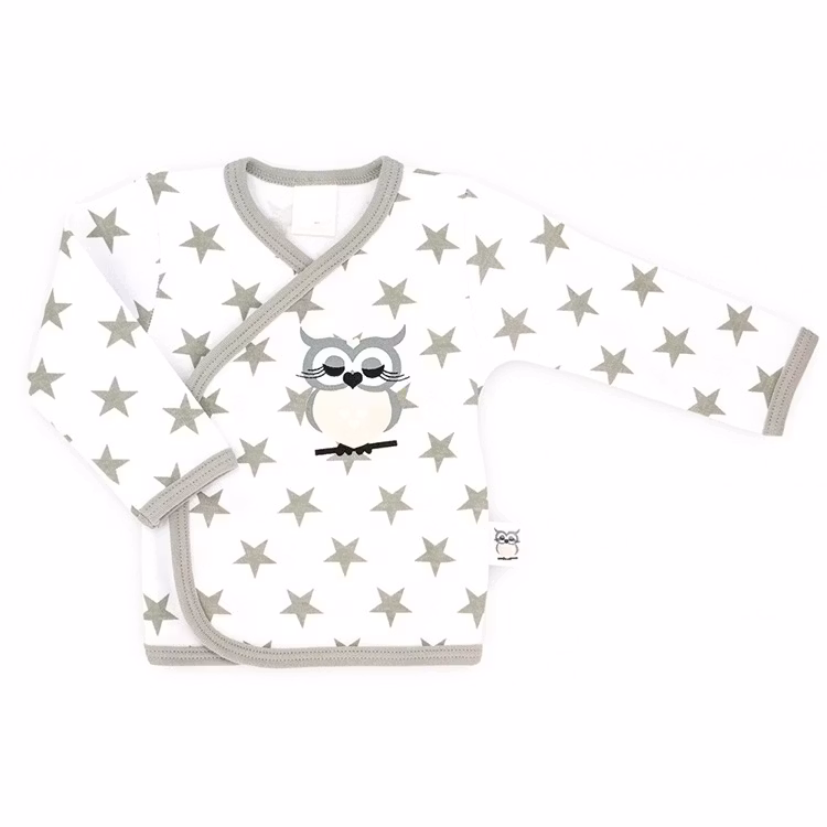 Vit långärmad tröja med stjärnor och omlott från kollektionen Baby Owl. Tröjan har knäppning med tryckknappar vid sidorna.