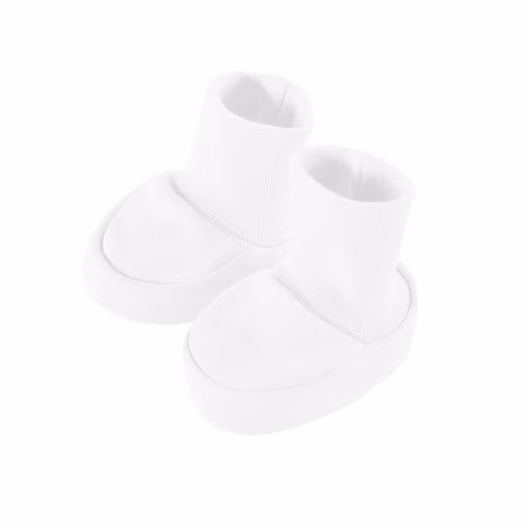 Mjuka och sköna vita babytossor från kollektionen Classic. Tossorna har mudd vid fotleden. One-size: 0-3 månader.